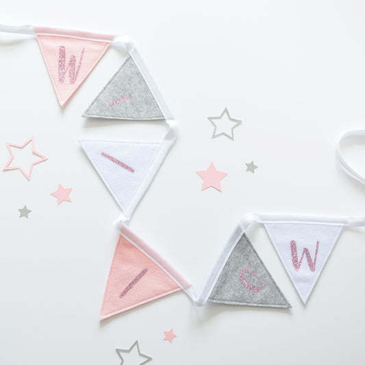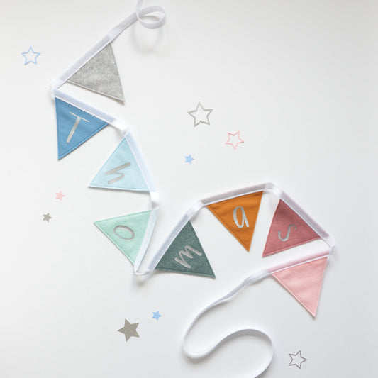 Our felt and glitter bunting is a re-imagined classic decoration, smaller in size and perfect for a child's room.