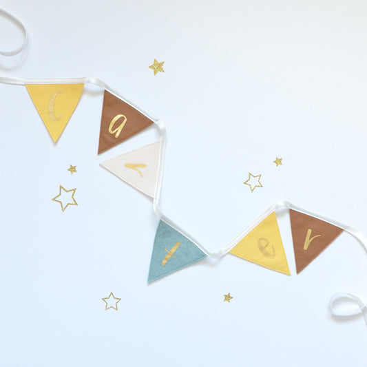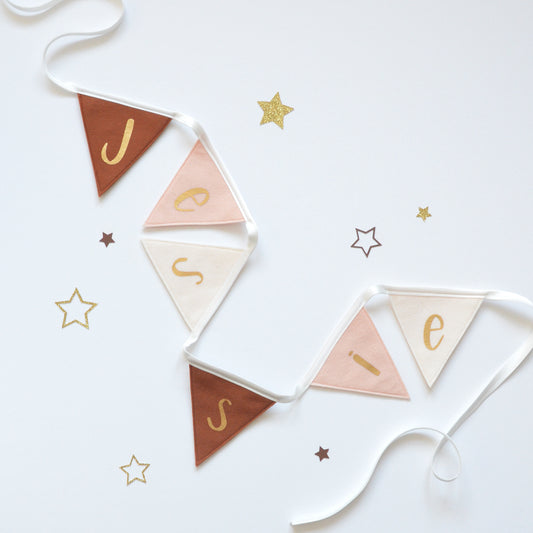 Are you looking for a personalised gift for a new baby? Our beautifully-made personalised name bunting is the perfect decoration for the nursery.