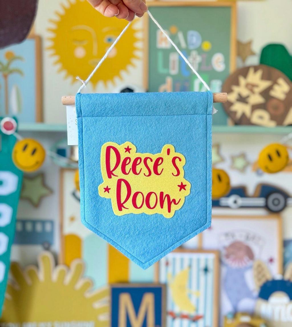This felt banner will hang proudly on the door or wall of their bedroom and would make a lovely personalised gift for any child.